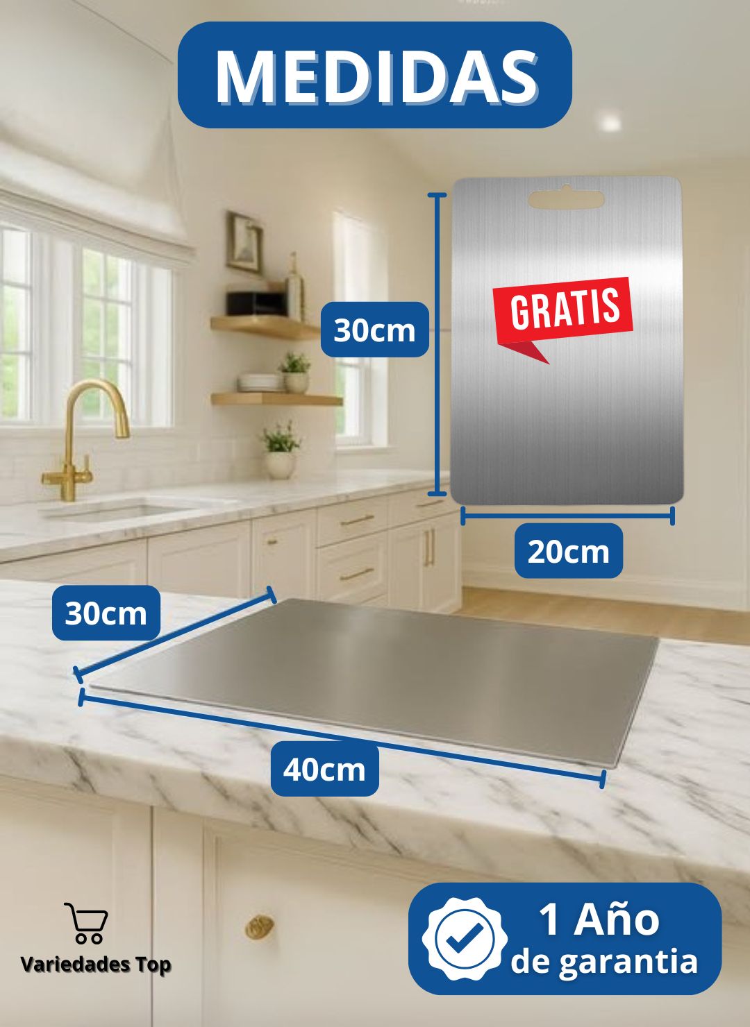 Evita el aumento de bacterias y moho con nuestra tabla de acero inoxidable 304 de grado alimenticio 100% y disfruta de una vida saludable.